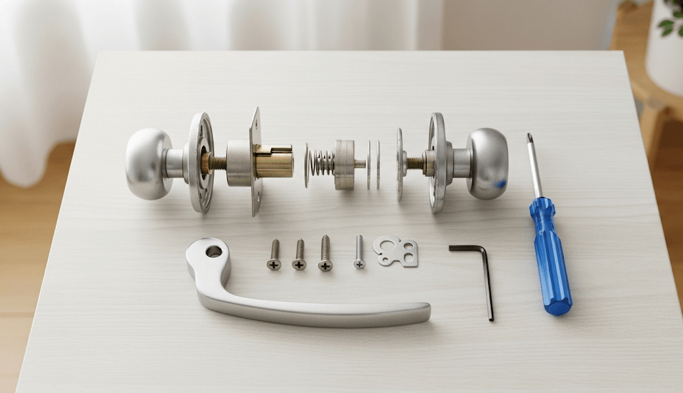 ここでは、代表的なレバーハンドルタイプと円筒錠(丸ノブ)タイプの外し方と、確認すべきポイントを解説します。