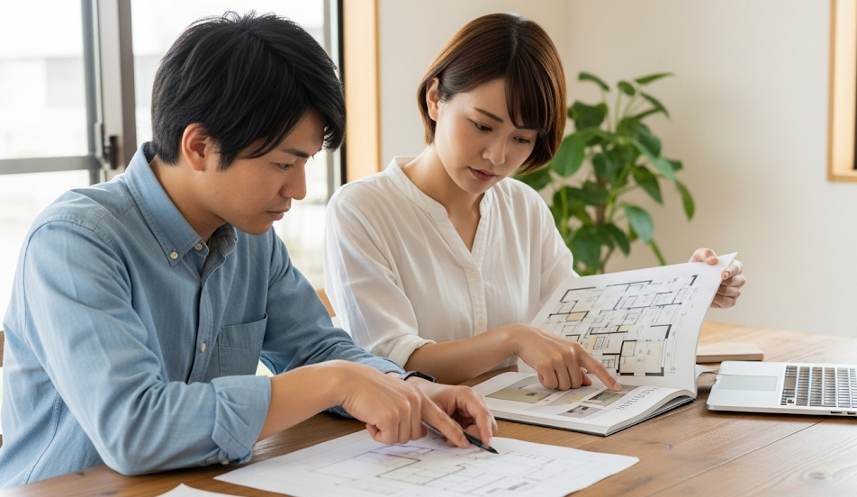 まず、ショールームへ行く前に、自宅の図面(特にLDKや水回りの配置が分かるもの)と、富士住建の標準仕様書を持参しましょう。